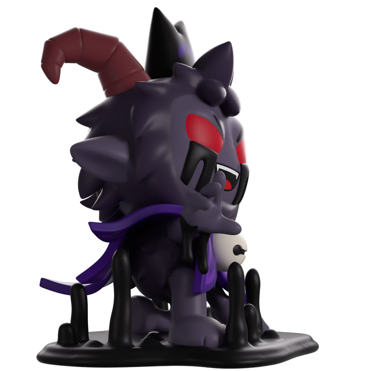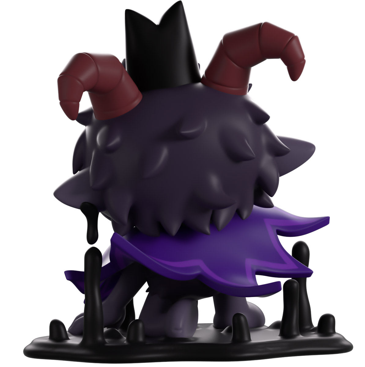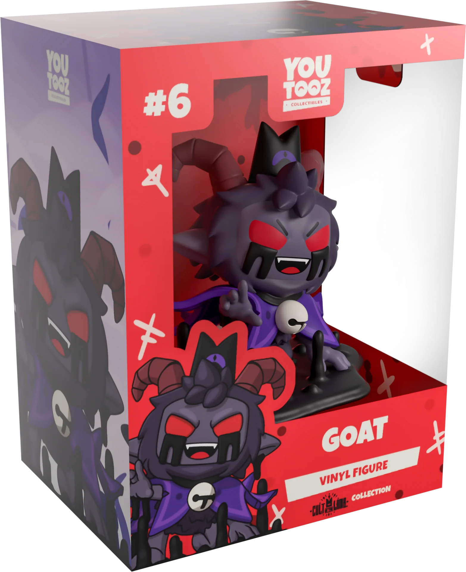 Die Herde zu hüten kann schwierig sein, und manchmal braucht man einfach Hilfe! Aber keine Sorge, die Ziege hat dein Blöken gehört und ist hier, um dir mit ihrem Debüt auf Youtooz zu helfen! Kniend, 9,7 cm groß, erhebt sie sich aus einem Pool schwarzer Materie, die sich in dicken Ranken um sie herum erhebt. Sie hält eine Hand ausgestreckt, die andere ruht auf dem Boden neben ihren Füßen, während ein spitzer, violetter Umhang über ihren Körper weht. Mit einem boshaften Grinsen und schwarzen Linien, die von ihren leuchtend roten Augen herabfließen, trägt sie eine violette Krone zwischen zwei lockigen, braunen Hörnern und eine silberne Glocke um den Hals. Die Außenseite ihrer Verpackung zeigt eine Statue eines Lamms, von dem schwarze Materie tropft. Im Inneren befindet sich ein leuchtender Blutfleck, übersät mit Symbolen, auf cremefarbenem Hintergrund. Die Schutzhülle greift diesen cremefarbenen Ton auf und zeigt Kreuze und Ketten, die im Boden verankert sind und sich gen Himmel erheben. Ihre Silhouette ist durch das große transparente Fenster auf der Vorderseite der Verpackung sichtbar. Dieses Sammlerstück wurde in Zusammenarbeit mit @therealrackun entworfen und wird in einer matten, geprägten Schutzhülle sowie einer passgenauen Kunststoffverpackung für optimalen Schutz während des Versands geliefert.