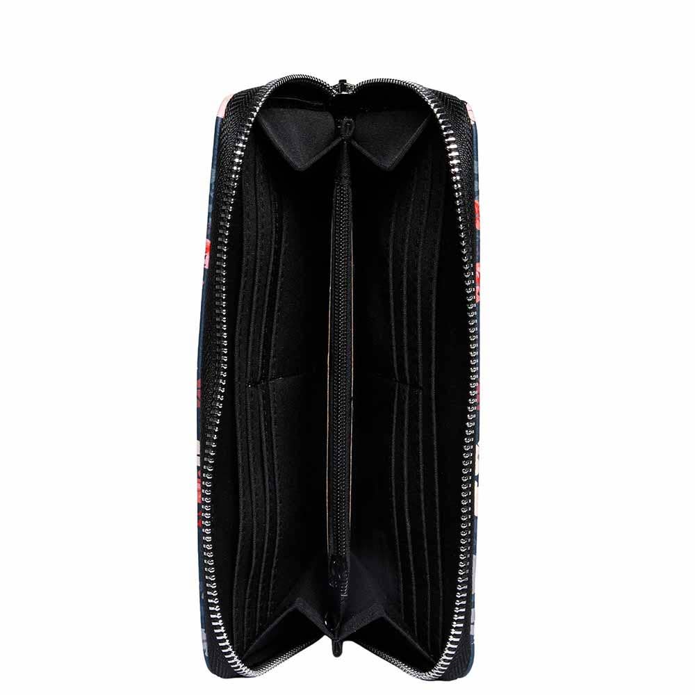 Geldbörse mit 12 Kreditkartenfächern, 2 Geldscheinfächern und einem zentralen Münzfach mit Reißverschluss.