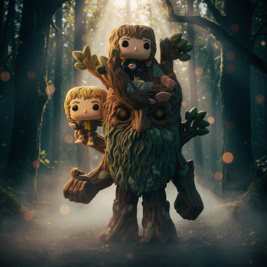Herr der Ringe Supergroßer POP! Vinylfigur Baumbart mit Maria und Pip 15 cm