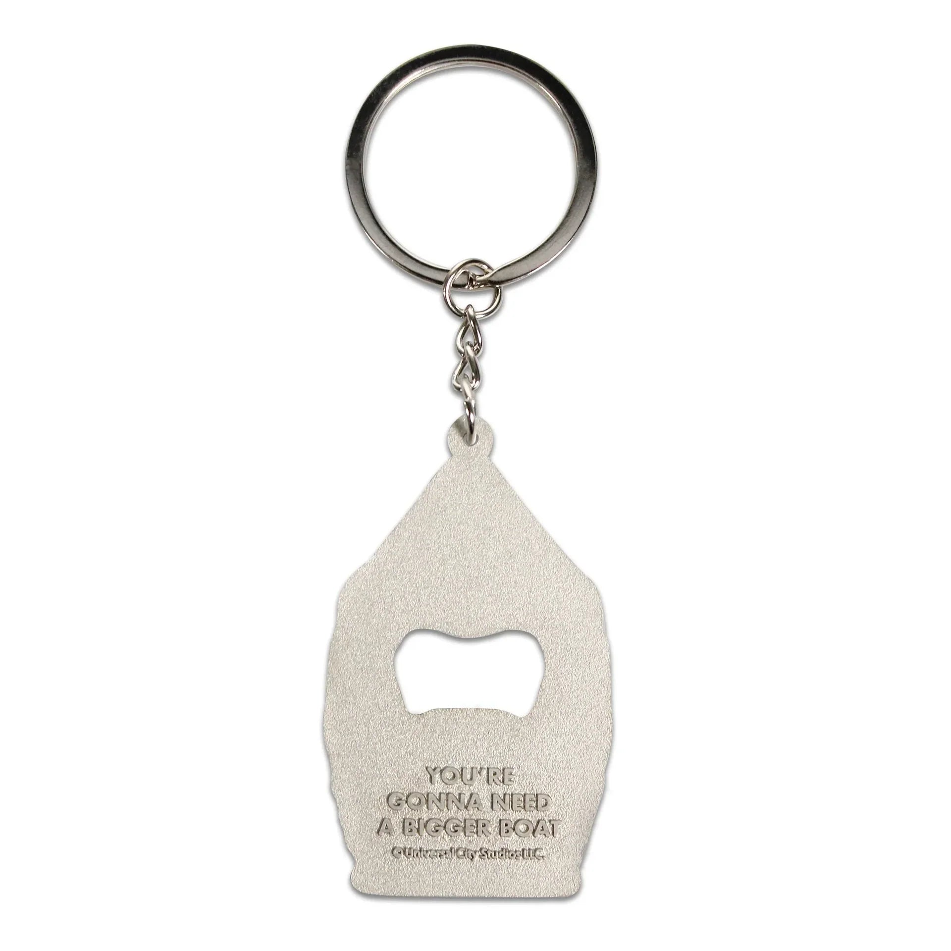 • Feel like a resident of Amity Island with our Jaws themed metal keychain, complete with bottle opener. Shaped to resemble the great white shark, the keyring features the Jaws logo on the front and the quote "You're gonna need a bigger boat" on the reverse.