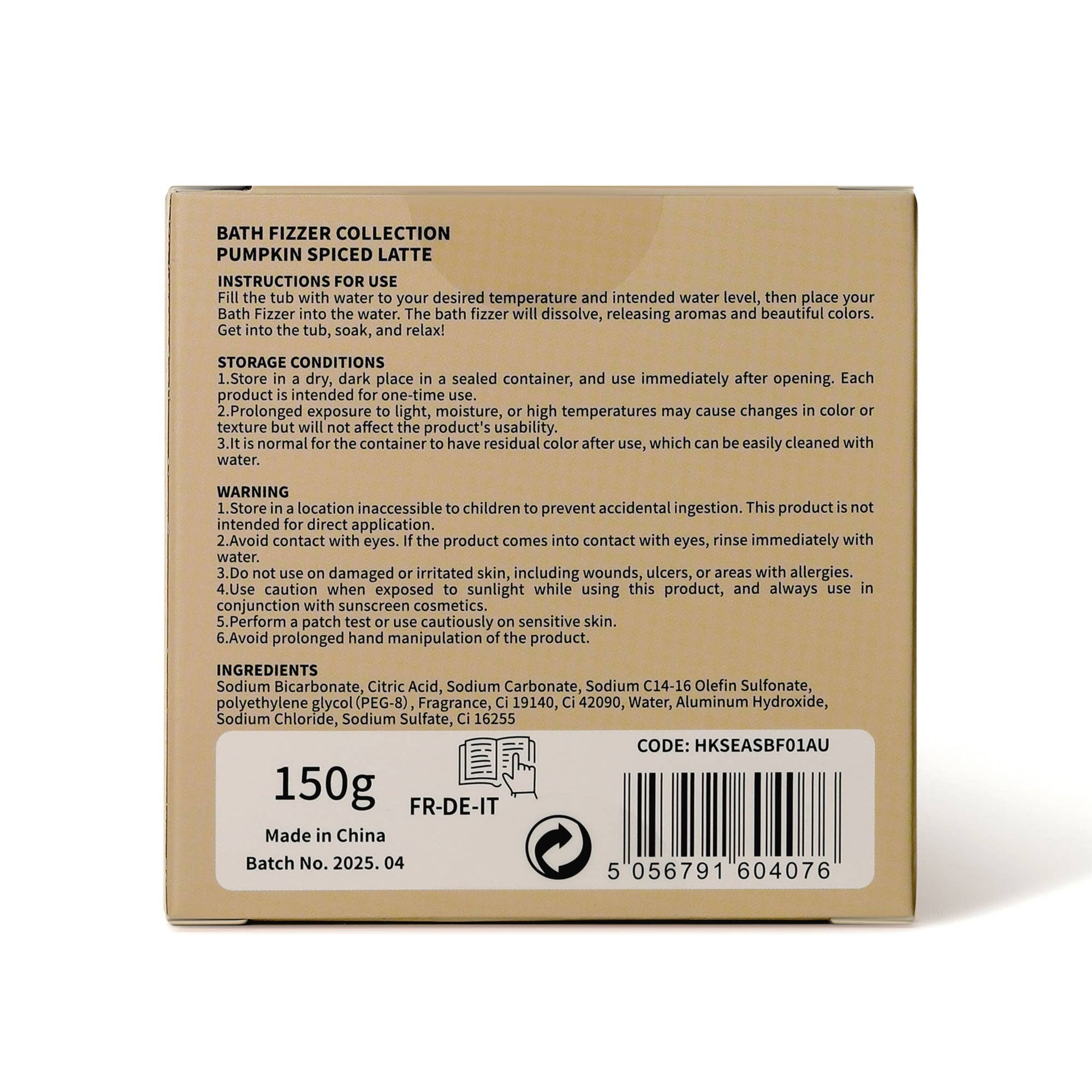 Bath bomb (150g) Fragrance percentage: 0.8% Size: Box size: 60*90*88mm 1 bomb per pack Fragrance name: Spiced Pumpkin Latte. Color: Brown