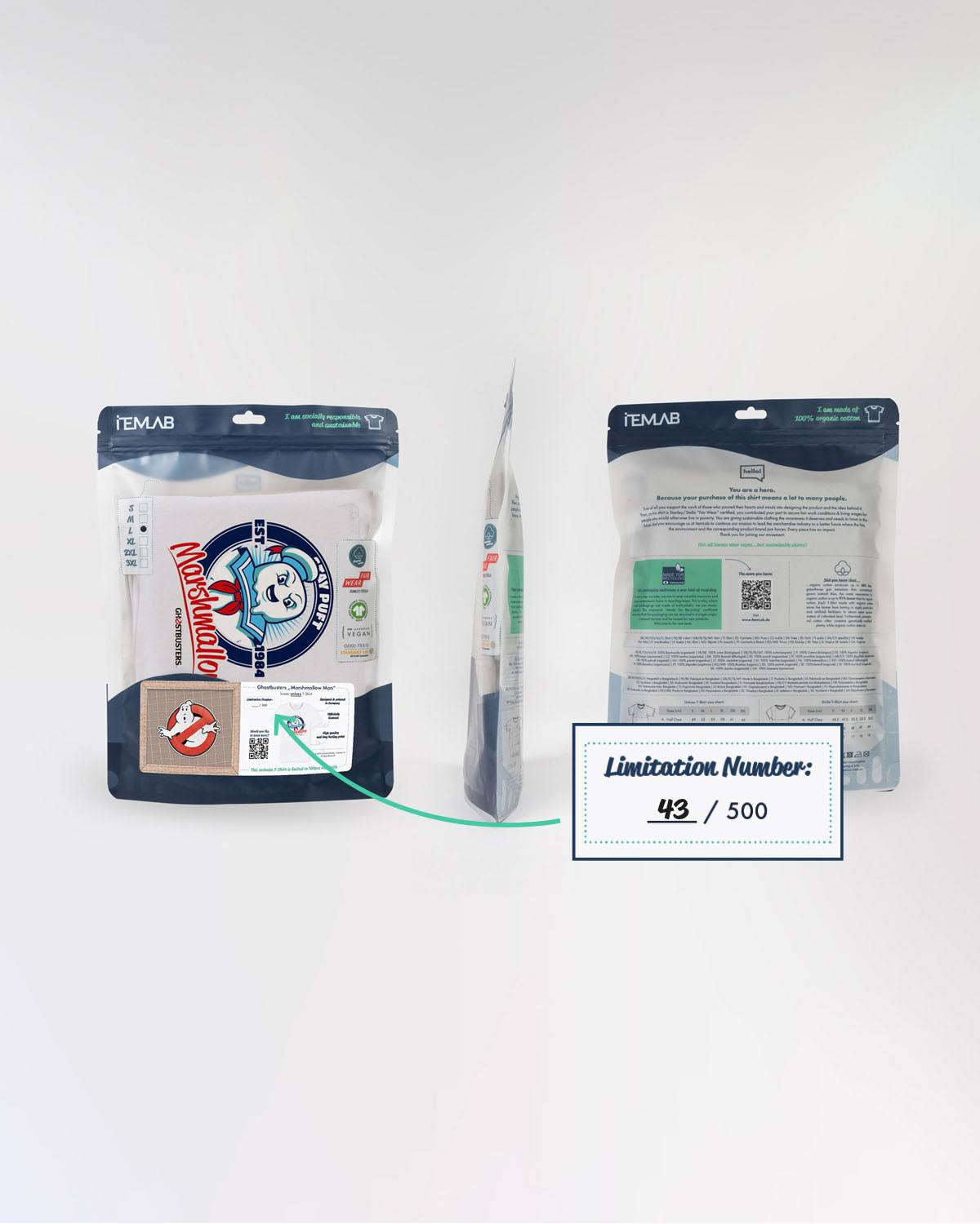 Durable premium t-shirt in classic Ghostbusters classic franchise. The Marshmallow Man is the mascot of Stay-Puft Corporation and a real favorite from the first day among all Ghostbusters fans. The t-shirt was produced by emphasizing sustainability, sustainability and high port comfort. The raw material is made up of 100 % cotton (GOTS certified organic cotton), which requires up to 91 % less water for culture. For optimal adjustment, the t-shirt is made with a side seam (no tubular fabric) and a grammage of 150 g/m². Thanks to a new technique, the water necessary for the production of screens can be reused and we were able to reduce the consumption of fresh water to 75 %. Water -based dyes considerably reduce microplastics produced during production.