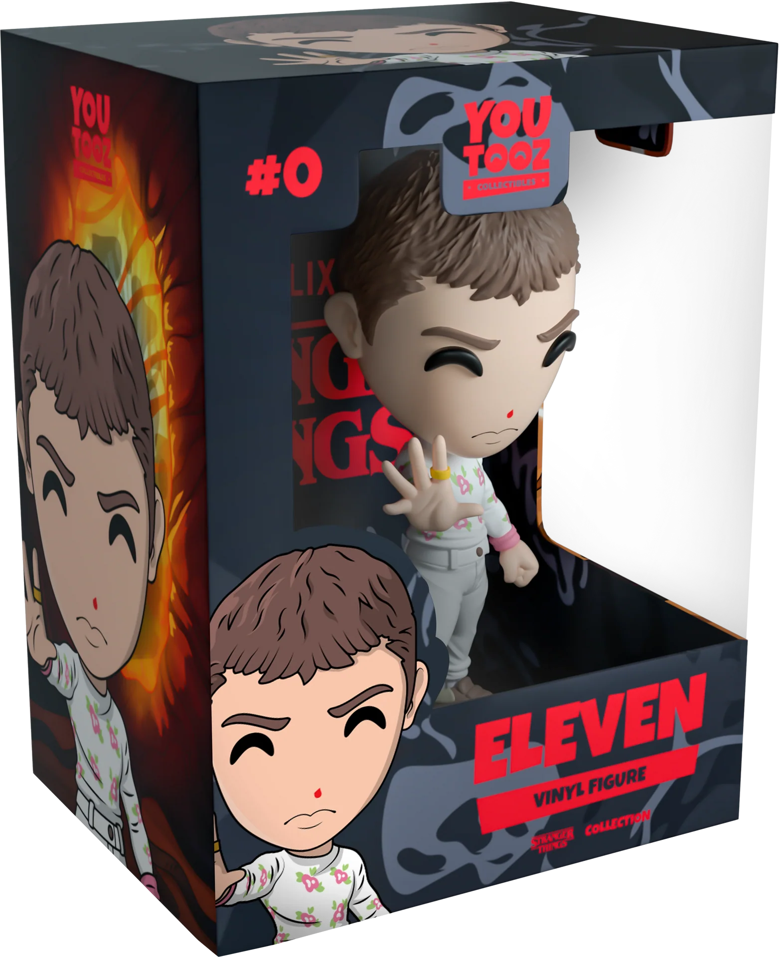 Stranger Things fait son entrée remarquée dans le monde de Youtooz ! Mesurant 11,7 cm, Eleven se tient forte, l'air déterminé et concentré. Elle est vêtue d'une tenue blanche, avec un t-shirt blanc à manches longues orné d'un motif floral. Son pantalon blanc est assorti à son haut et ses baskets marron complètent parfaitement la tenue. Sa main gauche est baissée le long du corps, le poing fermé, tandis que sa main droite est tendue devant elle, paume ouverte. Une bague en or est également accrochée à son index droit. En regardant son visage, on peut apercevoir une petite goutte de sang couler de son nez. L'extérieur de son emballage à double paroi offre une vue étrange sur l'eau et un escalier qui semble monter vers le ciel. L'intérieur est recouvert d'une texture noire, collante et visqueuse, ornée du logo Stranger Things. Cet objet de collection est livré dans une pochette de protection mate et gaufrée, ainsi que dans une protection en plastique de taille personnalisée pour une protection optimale pendant le transport.
