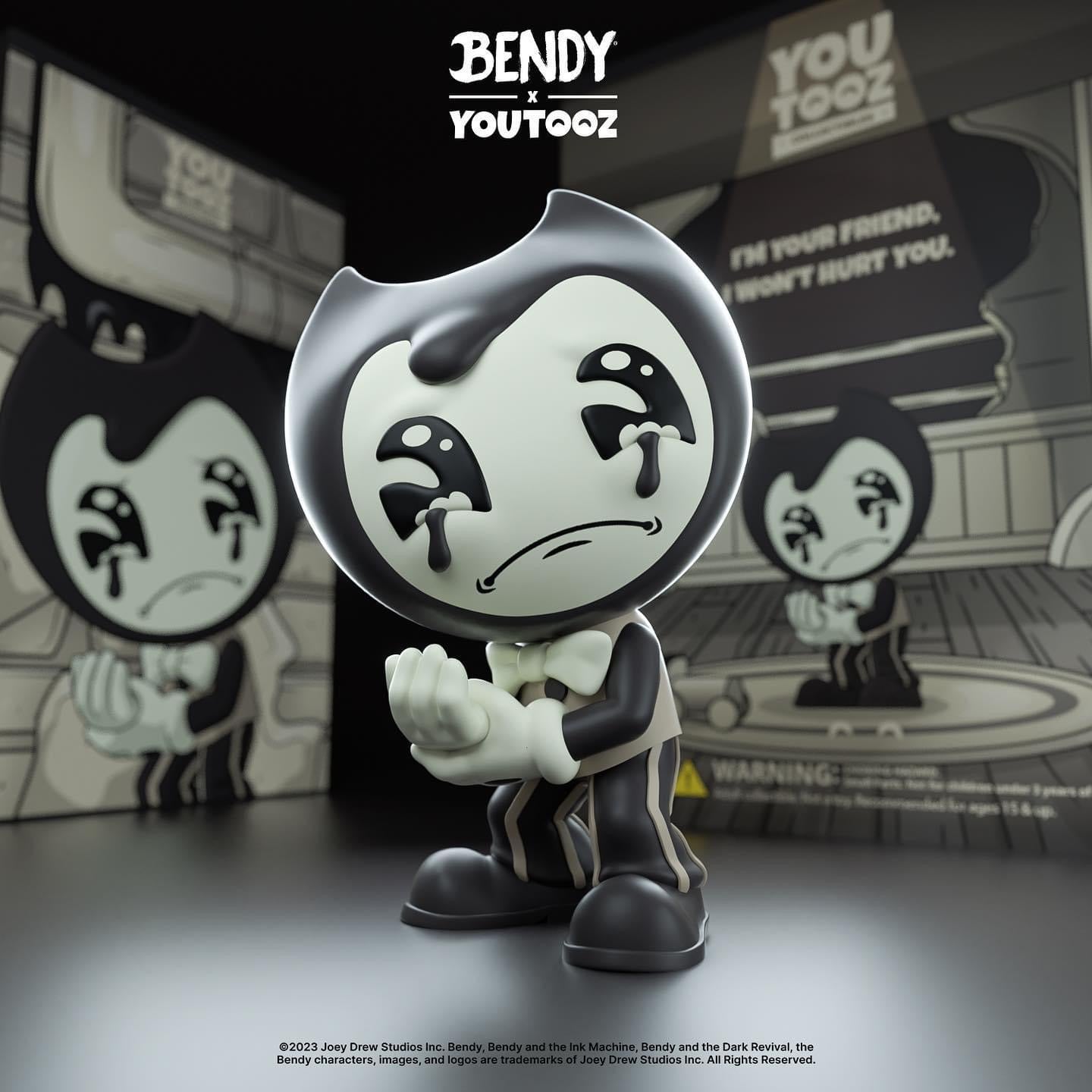 Bendy fait son retour sur Youtooz avec une toute nouvelle figurine en vinyle ! À 3,8 pouces de hauteur et posant en train de soigner une main gantée blanche blessée à l'avant, une triste bouche fronçant les sourcils traverse son visage sous des yeux brillants et incurvés qui coulent avec des larmes noires d'encre. Avec une tête arrondie noire qui s'élève jusqu'à deux points, il porte un nœud papillon blanc immaculé sur le devant et est vêtu d'un gilet boutonné à l'ancienne avec un pantalon à fines rayures et des chaussures noires. L'extérieur de son emballage voit un Bendy bouleversé debout dans une pièce vide, tandis que l'intérieur est recouvert de faisceaux de rayons lumineux en niveaux de gris. Le manchon de protection est recouvert d'épaisses gouttes d'encre noire dégoulinant sur un mur de briques et affiche leur silhouette à travers la grande fenêtre à l'avant.