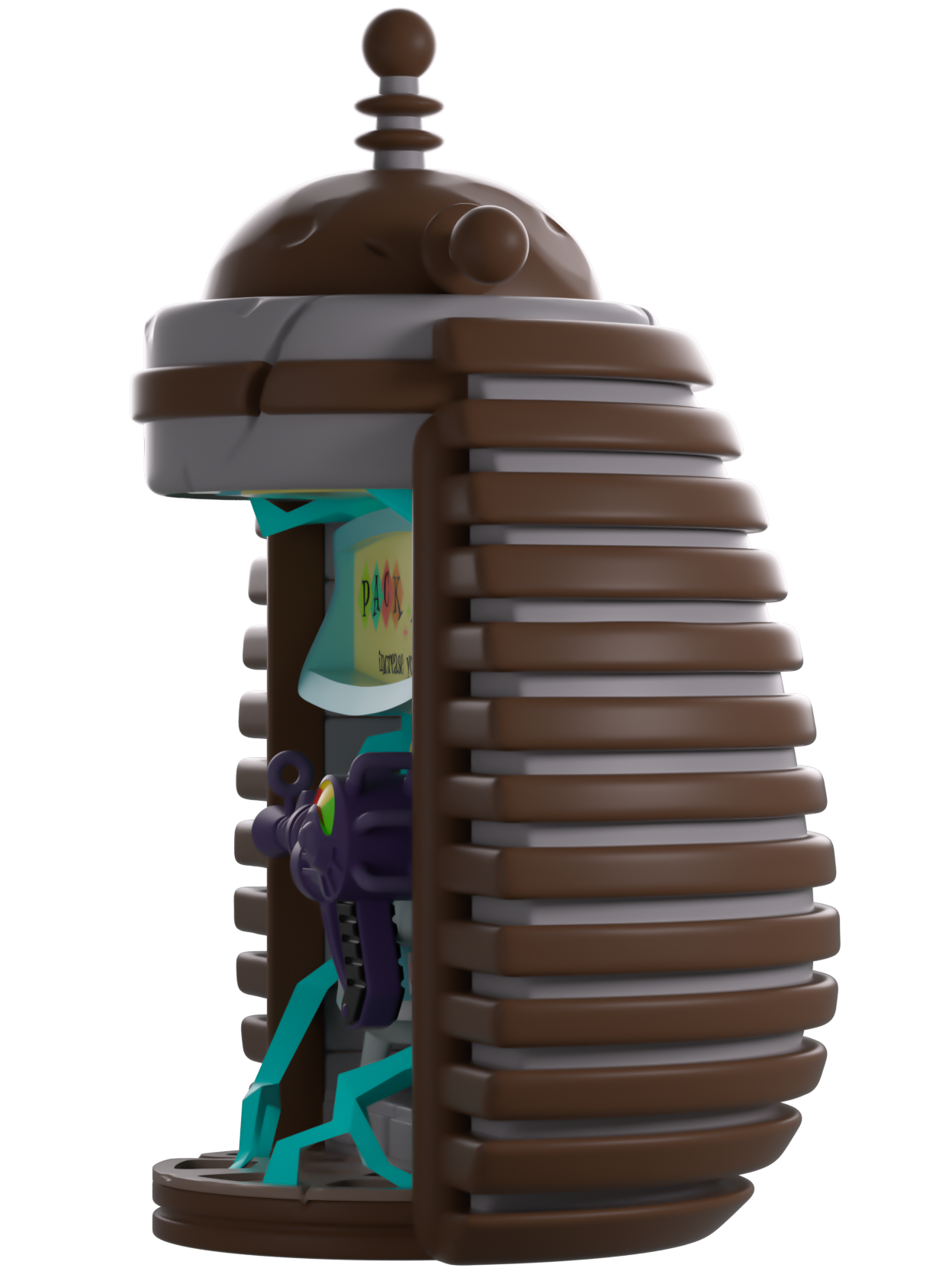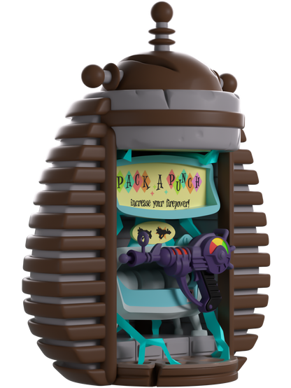 Salut partenaire ! On dirait que tu as besoin d'une mise à niveau ! Tu es au bon endroit : Youtooz est là pour t'aider à obtenir la puissance qu'il te faut ! D'une hauteur de 13,5 cm, sa silhouette ovoïde est recouverte de poutres en bois horizontales. Trois antennes en surplombent le sommet, prêtes à canaliser toute la puissance nécessaire à une mise à niveau parfaite. Au centre, au milieu des étincelles et des éclairs bleus, trône un lasergun violet fraîchement activé, prêt à s'emparer de toi et à poursuivre ton combat pour la survie ! L'extérieur de l'emballage présente une machine Pack-A-Punch d'où jaillit une électricité bleu vif, tandis que l'intérieur est d'un noir profond, recouvert d'un jet de sang rouge vif. La pochette de protection est ornée d'un panneau de bois usé avec des encoches rouges, la figurine étant visible à travers la grande fenêtre transparente à l'avant. Cet objet de collection est livré dans une pochette extérieure mate et gaufrée, ainsi que dans une protection en plastique sur mesure pour une protection optimale pendant le transport.