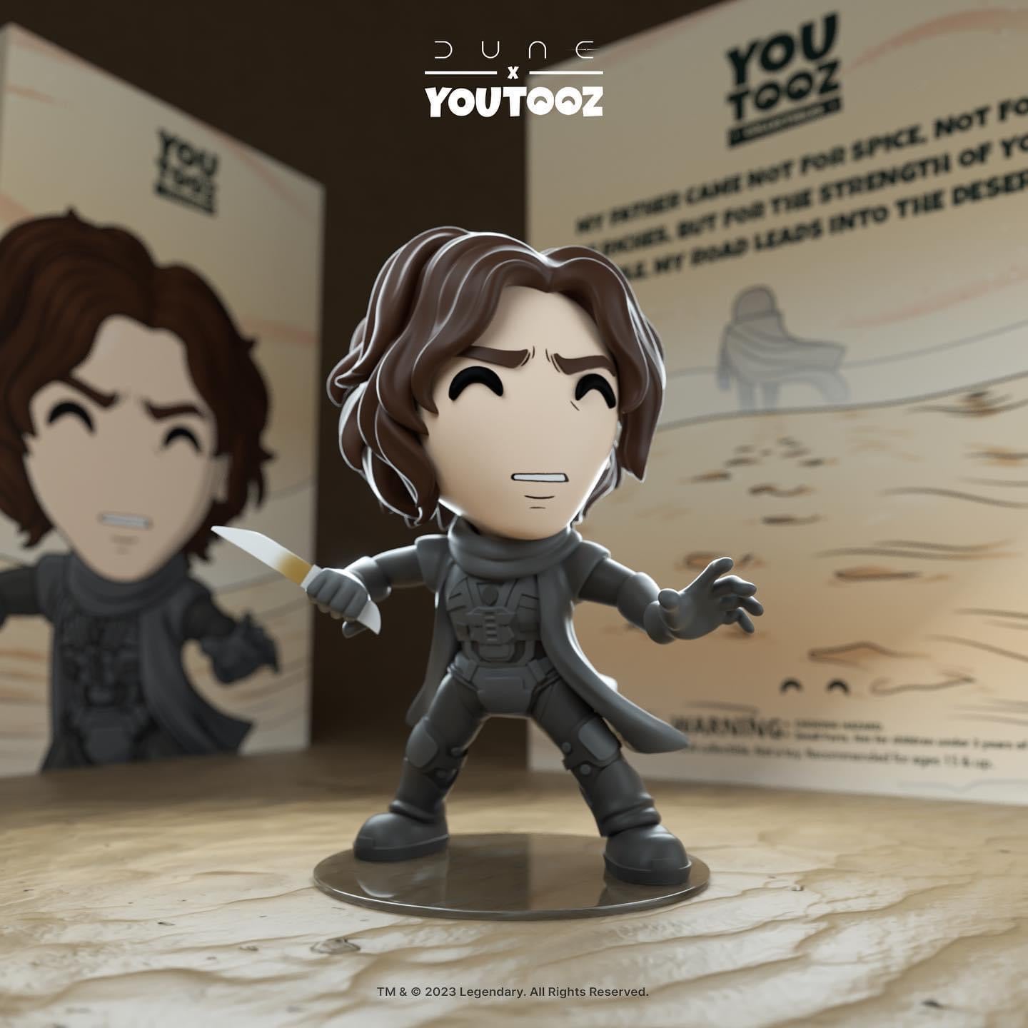 Le monde de DUNE est arrivé sur Youtooz dans cette nouvelle collaboration épique ! Debout à 4,8 pouces, Paul Atreides est prêt à se battre - peu importe ce qui peut arriver. Son expression faciale montre celle de la colère et du sérieux alors qu'il tient un crysknife avec sa main droite. Il est vêtu d'un Stillsuit tout noir avec un manteau noir dessus qui souffle dans le vent. Ses cheveux bruns bouclés sont séparés un peu plus sur le côté droit de sa tête. L'extérieur de son emballage à double paroi montre un vaste désert avec un seul personnage marchant vers l'inconnu. L'intérieur est un fond vert avec un symbole de la Maison des Atréides.