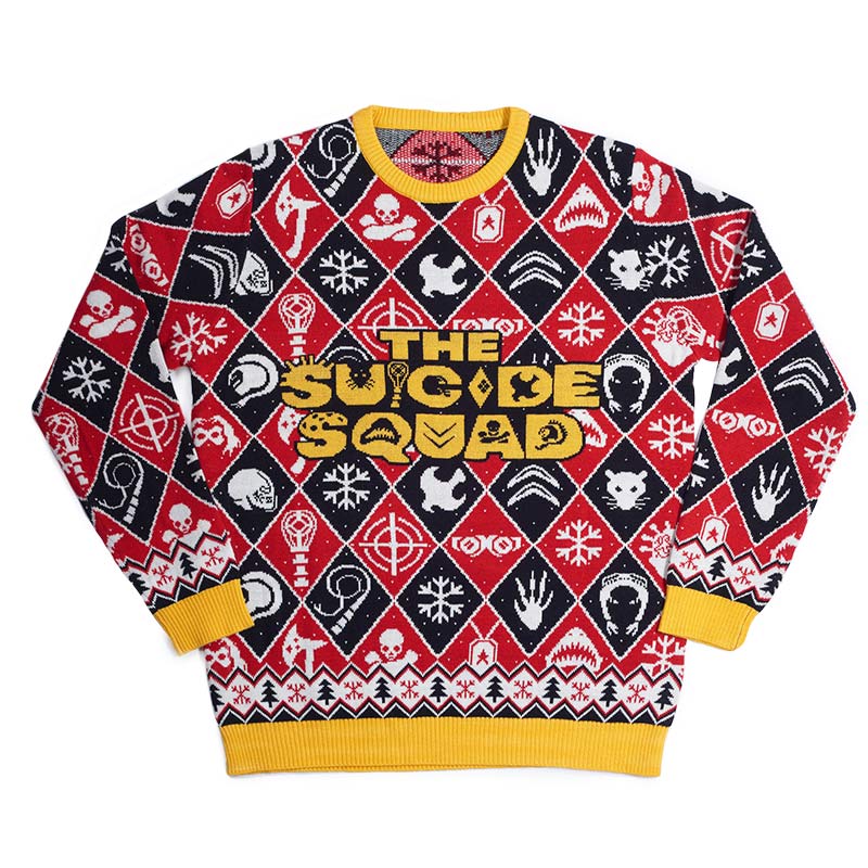Obtenez le pull de Noël parfait pour la saison des fêtes qui vous donnera l'impression de rouler avec le groupe de super-vilains infâme, The Suicide Squad ! Complet avec une broderie patch de haute qualité du logo The Suicide Squad sur le devant et de superbes détails nordiques, ce pull de haute qualité prêt pour les vacances est orné de superbes détails qui font référence aux personnages emblématiques de The Suicide Squad tels que Killer Shark, Harley Quinn et Suite!