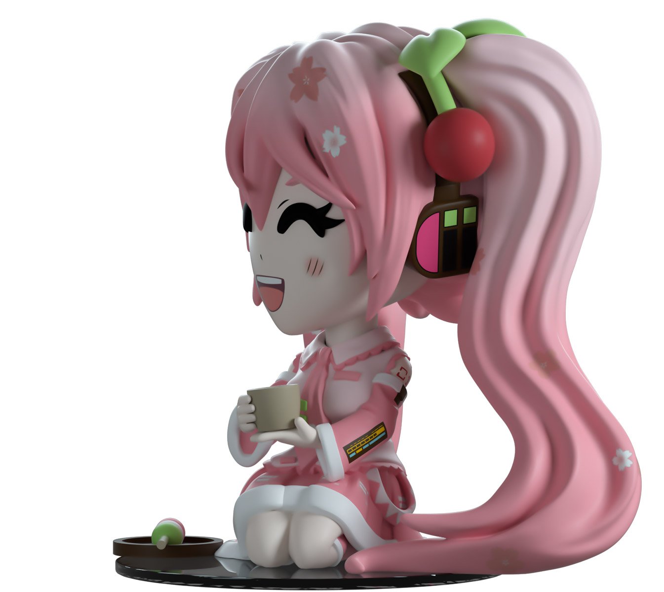 Miku fait son retour sur Youtooz en préparation de la saison des cerisiers en fleur ! Agenouillée à 3,6 pouces de hauteur et tenant une tasse de thé fumante dans ses deux mains, elle a remplacé sa tenue habituelle grise et bleue par la plus mignonne rose à froufrous avec des garnitures blanches épaisses. Ses longs cheveux roses sont ornés de délicates fleurs de sakura et tombent de chaque côté de sa tête en nattes épaisses pour se reposer à ses côtés, encadrant parfaitement son visage rougissant ravi. Alors que le casque marron qui repose sur ses cheveux est orné de cerises rouges et vertes vibrantes, un délicieux trio de boules de mochi est assis sur l'assiette à ses côtés. L'extérieur de son emballage est rose pâle avec des pois et des fleurs de cerisier qui encadrent la silhouette de Miku qui se prolonge jusqu'à l'intérieur entourant complètement sa silhouette. La gaine de protection est rose et blanche avec des barres vertes ondulées qui la traversent. Cet objet de collection est livré dans un manchon extérieur mat, gaufré et protecteur et un protecteur en plastique de taille personnalisée pour une protection maximale pendant l'expédition.