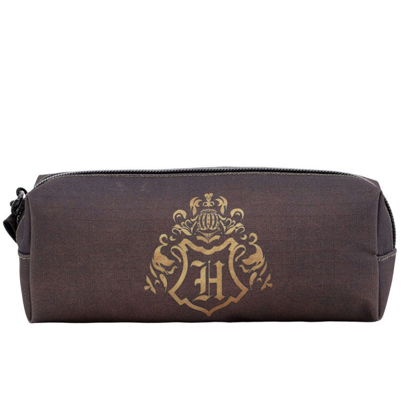 - Trousse Harry Potter modèle blason Poudlard marron et bronze.